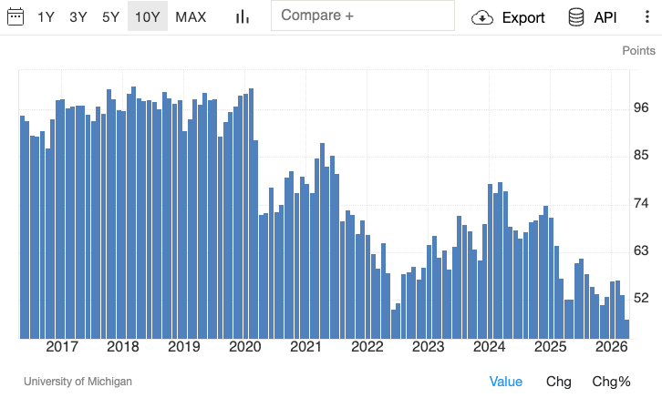 Remember when I said consumer sentiment was low? I MEANT IT. Lower than 2020 when everyone thought they were going to die.